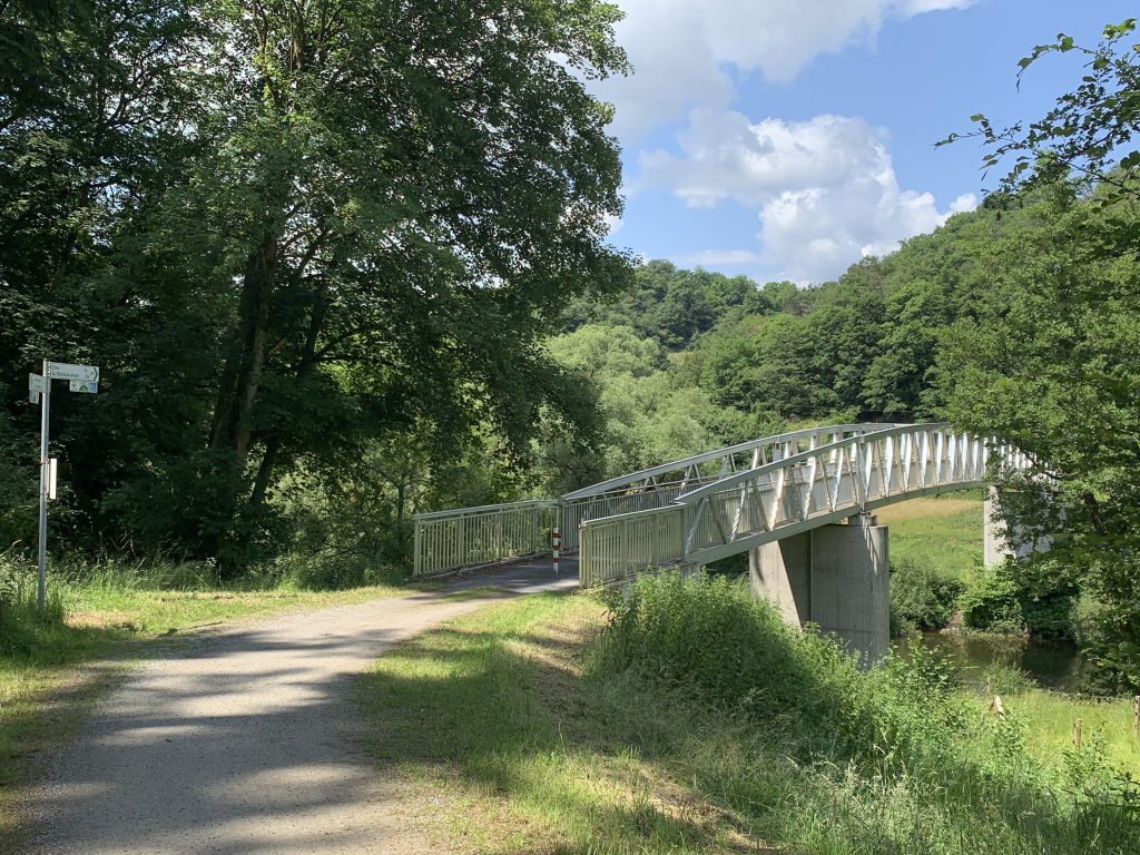 Es geht weiter nach Laurenburg und dort beginnt dann der im März 2023 eröffnete neue Abschnitt zwischen Laurenburg und Geilnau. Früher gab es dort nur die Möglichkeit über den Berg via Holzappel und Scheidt zu fahren oder die Strecke von Laurenburg nach Balduinstein mit der Bahn zurückzulegen.