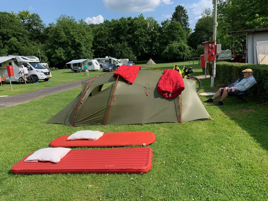 Auf dem Campingplatz bekommen wir einen Platz auf der Zeltwiese zugewiesen und treffen dort das holländische Paar wieder, die andernorts Rast gemacht hatten und nun vor uns eingetroffen war.