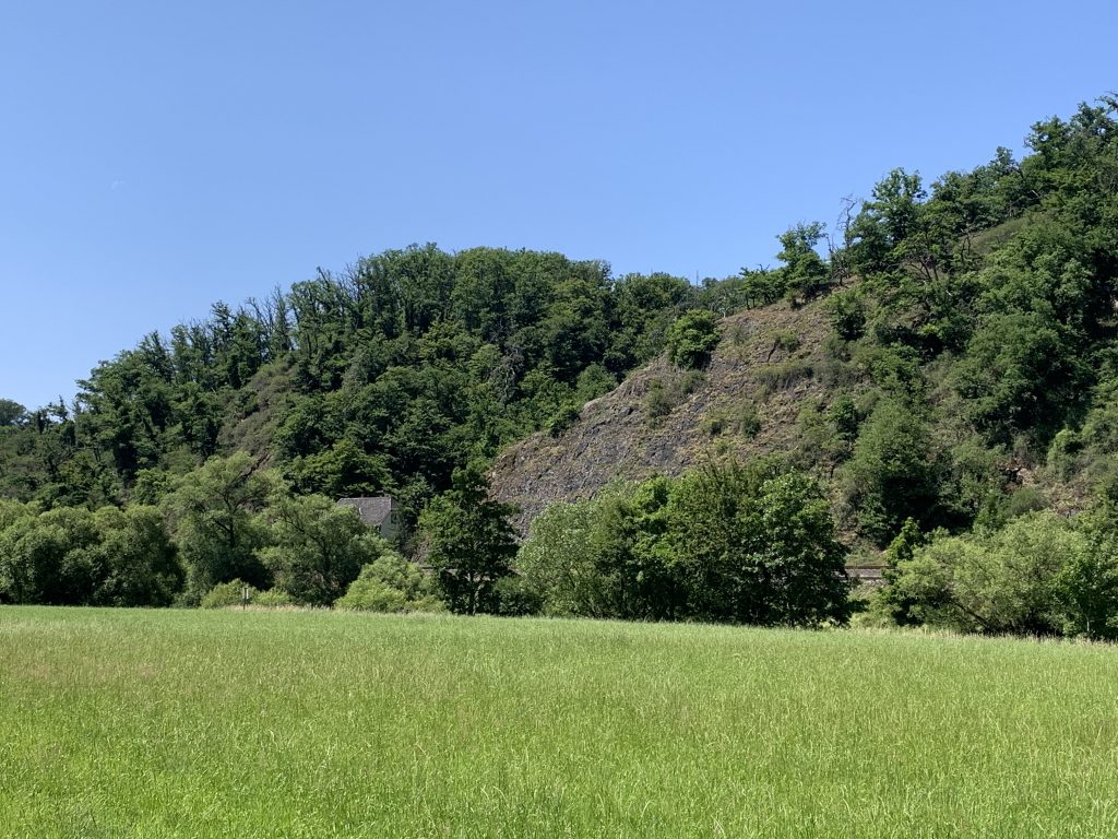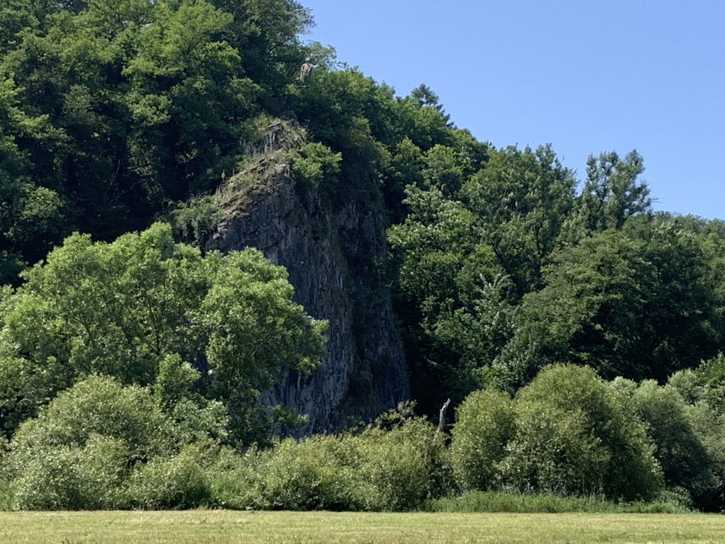 Wir befinden uns wieder im malerischen Teil des Lahntals und passieren bei Altendiez diese imposante Felswand.