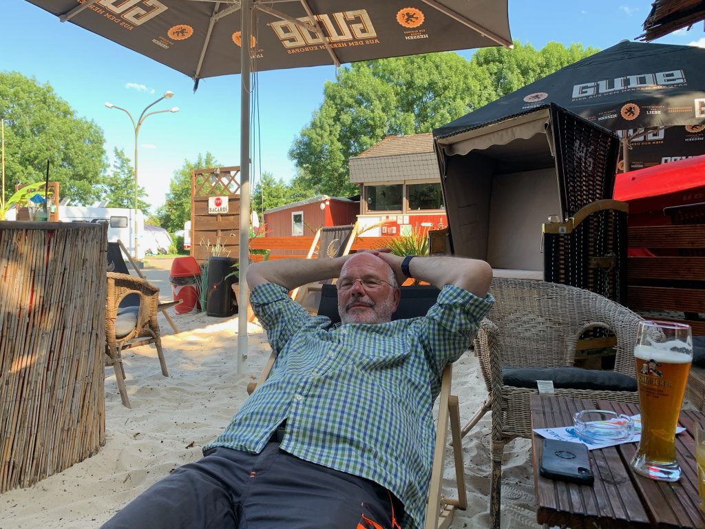 Die Familie aus Marburg trudelt ebenfalls dort ein und die vorhandene Community bekommt langsam einen Touch von Familie. Ich mache es mir mit einem kühlen Bier im Beachclub gemütlich.