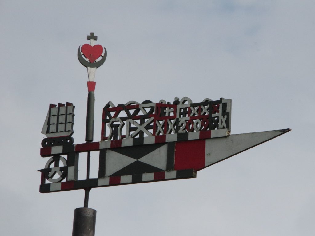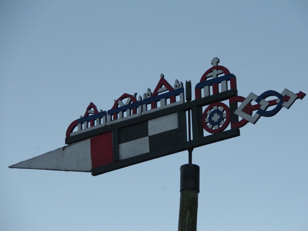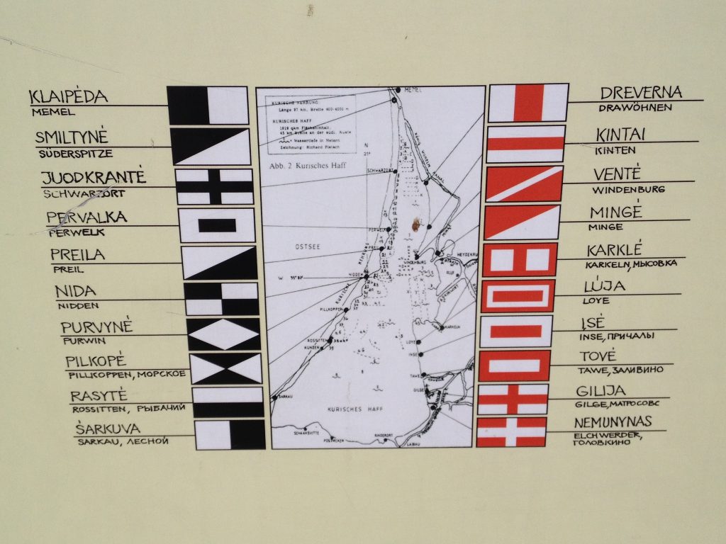 Ein weiteres kurisches Erbe begegnet uns auf dem Weg zurück zu unserem Domizil. Kunstvolle Kurenwimpel zieren unseren Weg. Sie zeigten den jeweiligen Heimathafen der Haff-Fischer an – eine Wissenschaft für sich. Wir können uns gar nicht sattsehen.