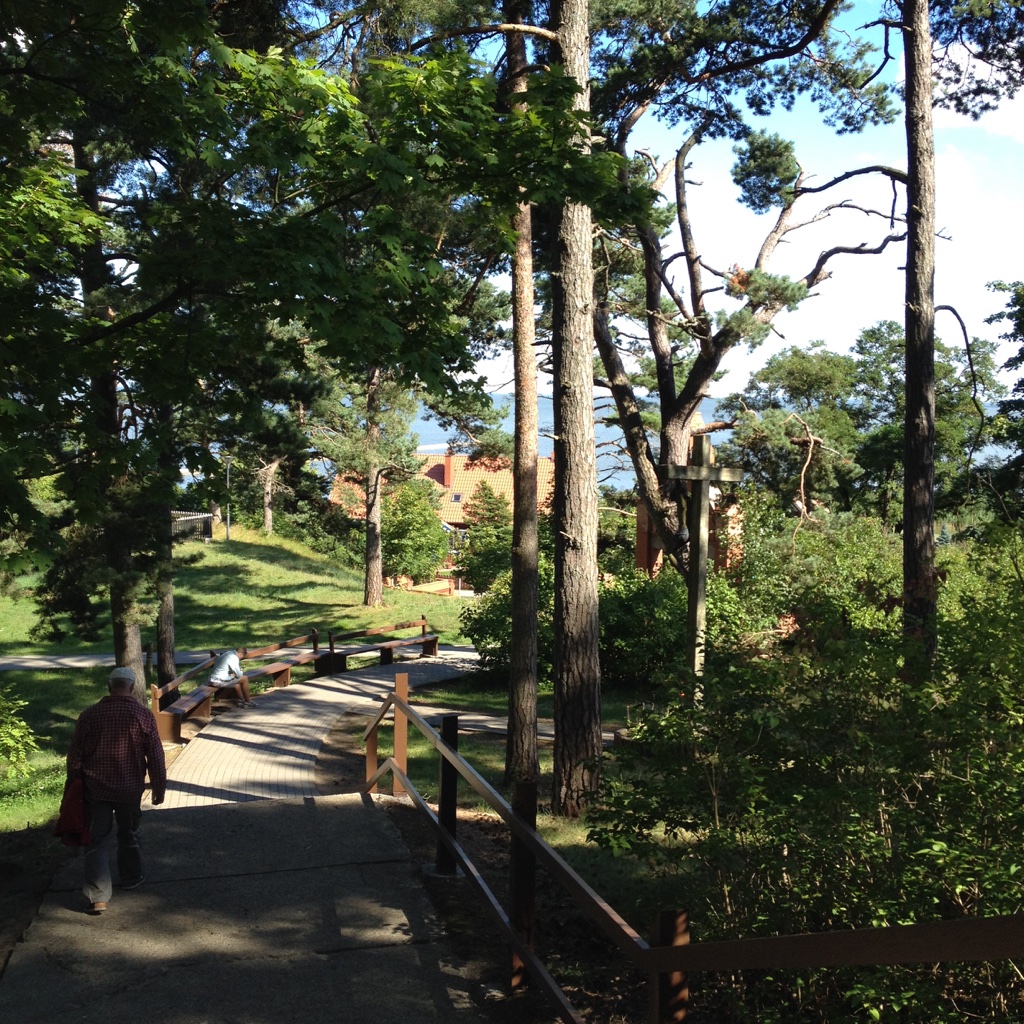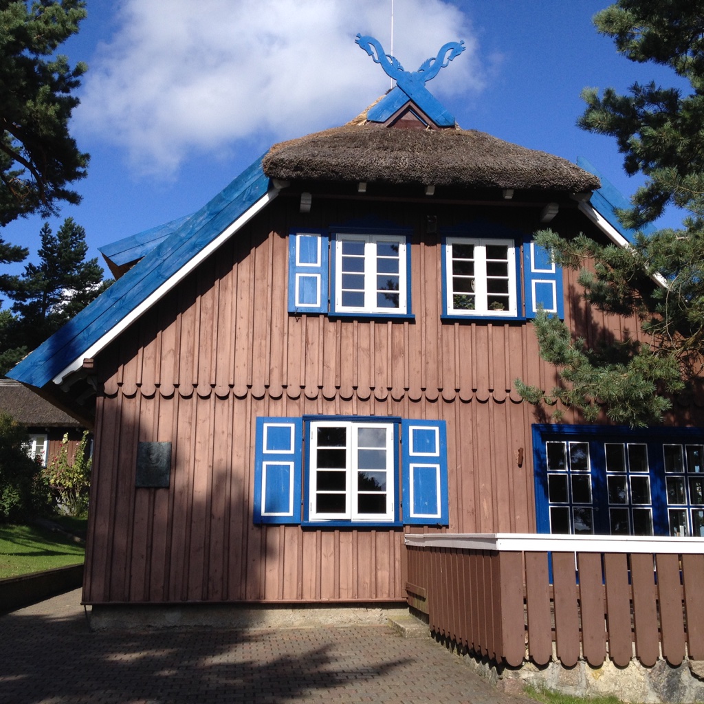 Wieder an Land machen wir noch einen Spaziergang und besuchen das Thomas-Mann-Kulturzentrum, das Sommerhaus der Familie Mann. Ein wunderschönes reetgedecktes Haus, das hoch oben auf einem Hügel thront, dem sogenannten „Schwiegermutterberg“. Von hier oben hat man einen faszinierenden Blick über das Haff. Bei einem Besuch hatte die Landschaft Thomas Mann so sehr begeistert, dass er dieses Haus bauen ließ. Wie gut wir das verstehen können. Leider konnten die Manns nur die Sommer 1930 bis 1932 hier verbringen.