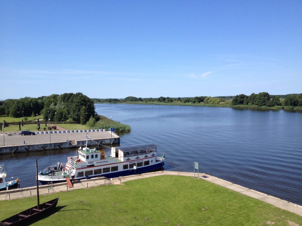 Heute steht also endlich Minge auf dem Plan. Frühzeitig lösen wir uns von Elvira’s fantastischem Frühstück, finden uns pünktlich im Hafen ein und gehen an Bord der „Forelle Flicka“. Sie bringt uns über das Haff und durch das Memel-Delta zum Örtchen Minge und noch einmal auf die Insel Russ, nach Uostadvaris.