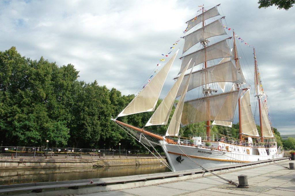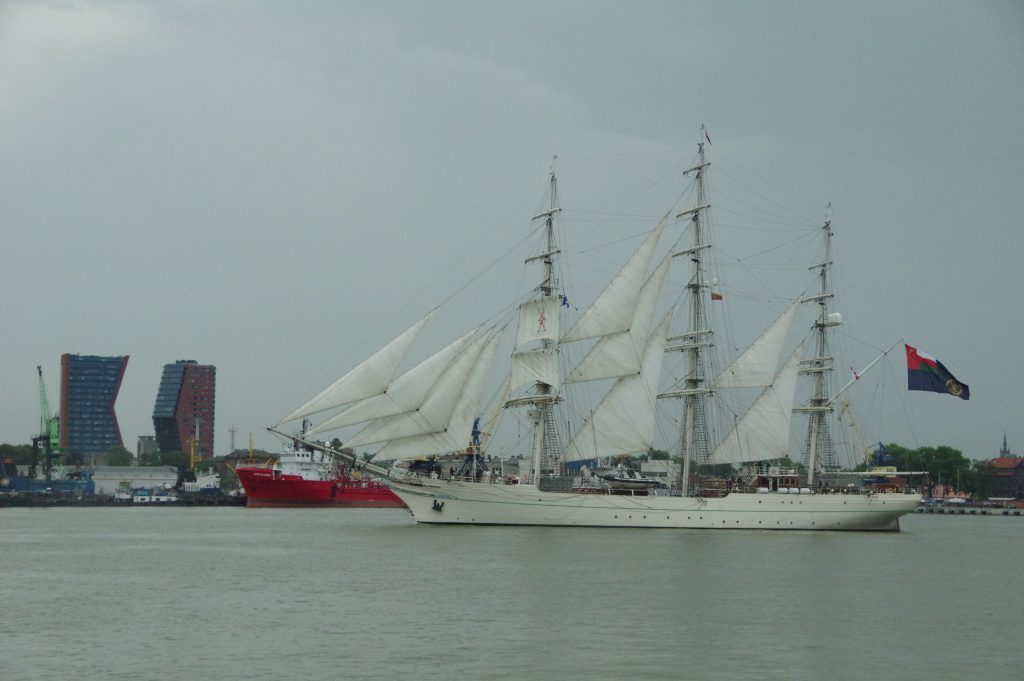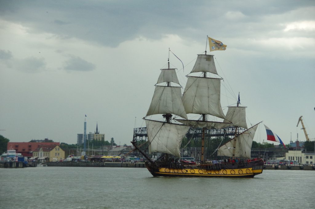 In Hafennähe angelangt, stellen wir fest, dass sich all die großen Segelschiffe, die am Wochenende zum Meeresfest in Klaipeda waren, zum Auslaufen bereitmachen. Welch ein spannendes uns bewegendes Schauspiel zugleich. Ein britischer Windjammer macht sich sogar mit lautem „Rule, Britannia!“ auf den Weg. Und wir können gar nicht genug Fotos machen.