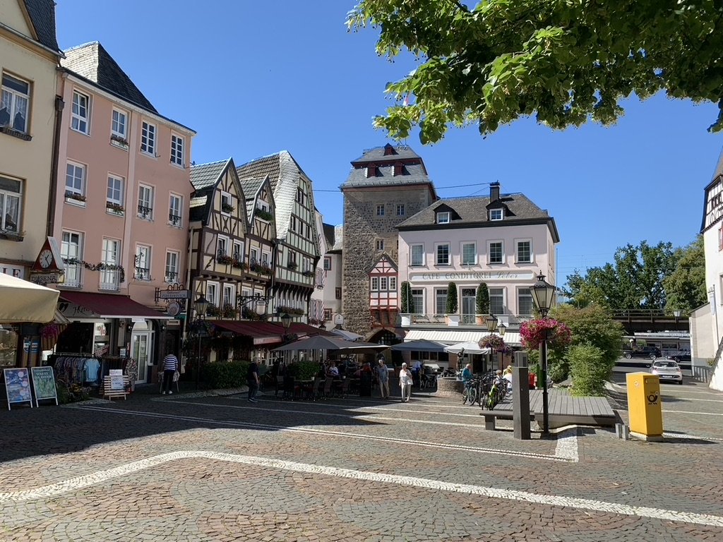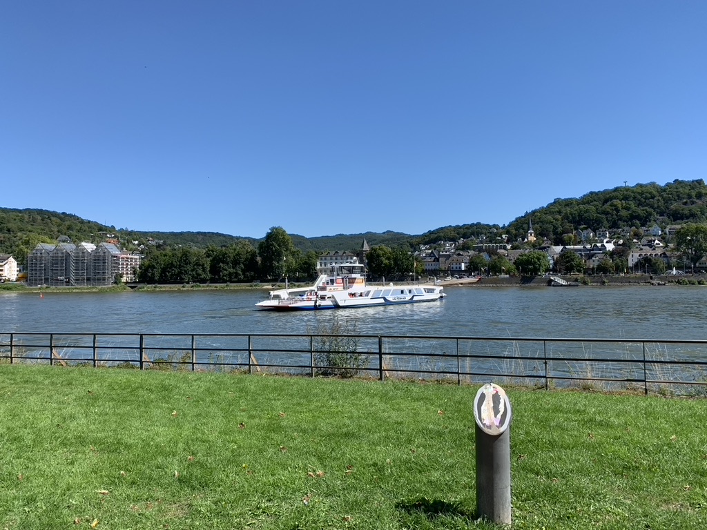 Frühstück im Café am Linzer Marktplatz, Gratulation per Telefon, schnell noch ein paar Fotos und dann mit der Fähre auf die linke Rheinseite. Bis Bonn sind wir dort schon einmal gefahren, aber daran erinnere ich mich nur schemenhaft.