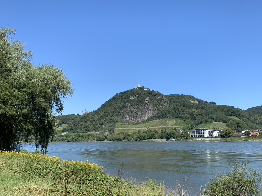 Auf der gegenüberliegenden Rheinseite dann wenig später der Drachenfels zwischen Bad Honnef und Königswinter.