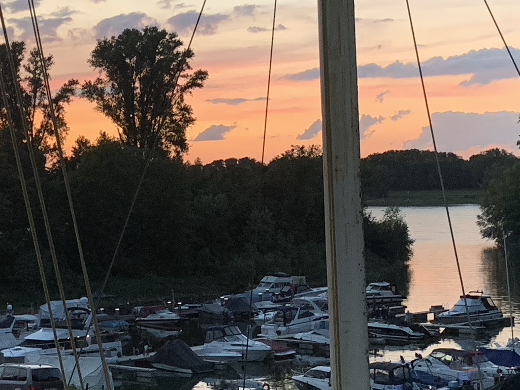 Ob es altem rheinischen Brauchtum entspricht, weiss ich nicht, aber Glockenschlag drei wecken die Hochzeitsgäste wohl noch einmal das Brautpaar mit lauter Musik. Zum Missfallen aller, die schlafen möchten. Pünktlich um sechs geht dann auch der Flugverkehr wieder los. Also wieder keine besonders erholsame Nacht.