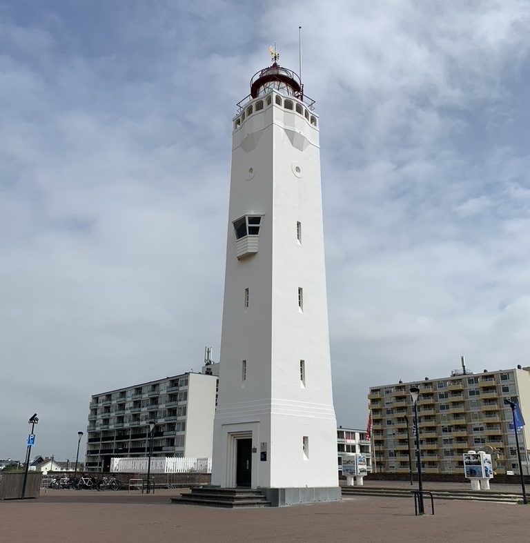 Wir halten gar nicht an, und auch dem Verkehrsrummel in Katwijk entfliehen wir schnell. So gelangen wir bald nach Noordwijk, dem Urlaubsort meiner Kindheit. Auch Noordwijk hat sich enorm verändert. Den Koningin Wilhelmina Boulevard gibt es noch und zu meiner Freude auch den weißen Leuchtturm, der natürlich für ein Foto herhalten muss. Einige der alten Hotels am Boulevard machen einen recht morbiden Eindruck, andere Lokalitäten sind neueren Bauten gewichen. Das Huis ter Duin, in dem einst Prominenzen wie die persiche Prinzessin Soraya abstiegen und das exponiert mitten in den Dünen lag, ist nach wie vor Luxushotel mit großem Park und liegt heute am Koningin Astrid Boulevard.