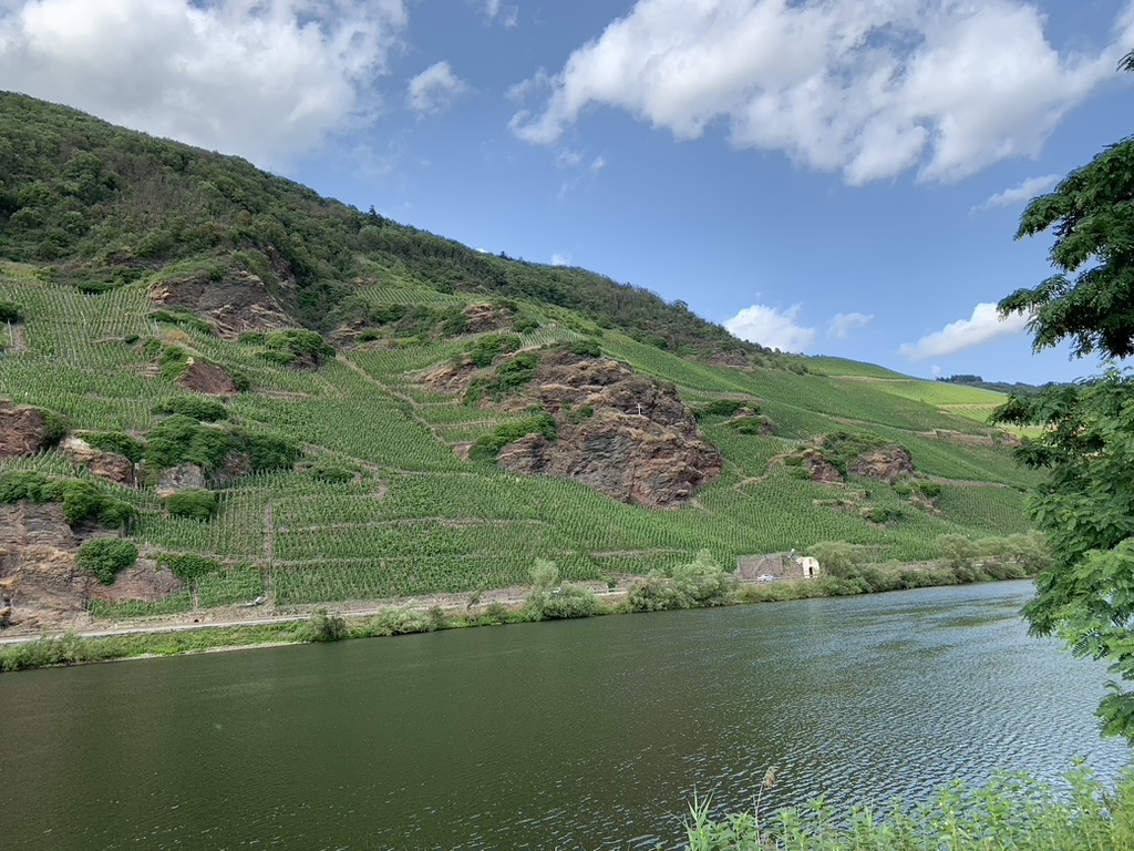 Weiter geht’s der Mosel nach. Ein kurzer Foto-Stopp in Piesport, wo uns aber zu viel Rummel ist. Felsen und Weinhänge wechseln sich hier ab in einer wunderschönen Landschaft.